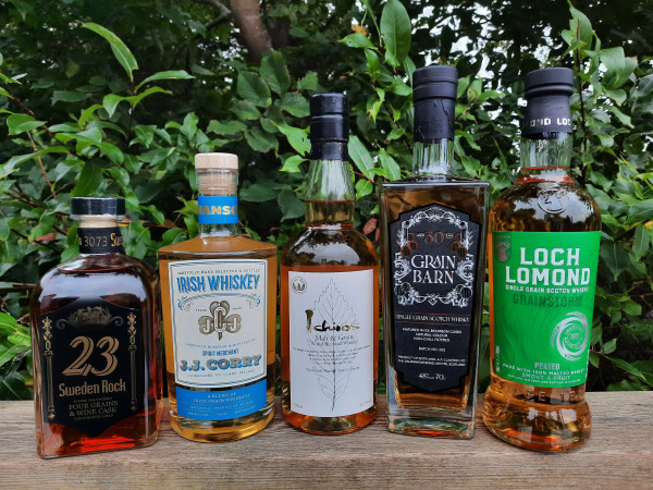 Till sist, i femte glaset, fanns Loch Lomond Grainstorm, en peated single grain på 46% till priset av 449:-. Den var gjord av 100% mältat korn men i kolonnpanna och får därför inte kallas maltwhisky i Skottland. Gjord på samma sätt som t ex Nikka Coffey Malt. Rökigheten var inte särskilt påträngande och denna whisky valdes till kvällens bästa.